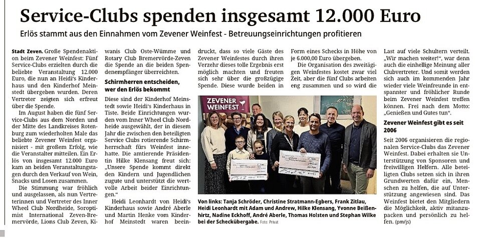 Die Zevener Zeitung hat über die Spendenübergabe berichtet.