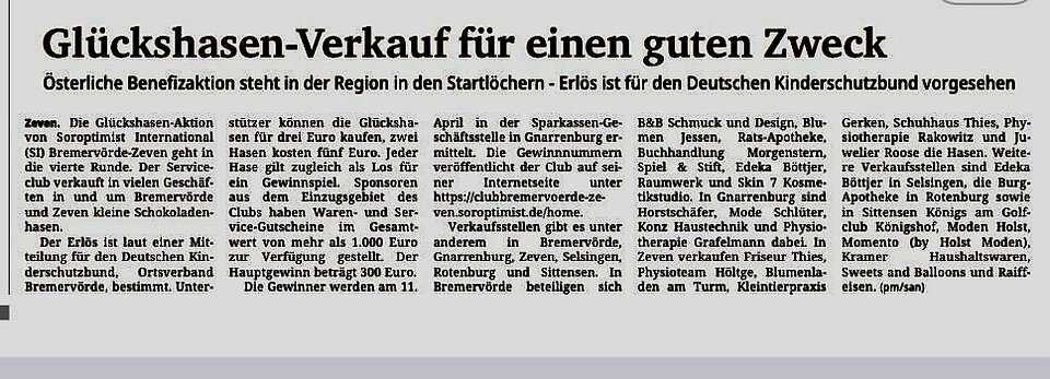 Die Bremervörder Zeitung und die Zevener Zeitung haben über unsere Glückshasen-Aktion berichtet.