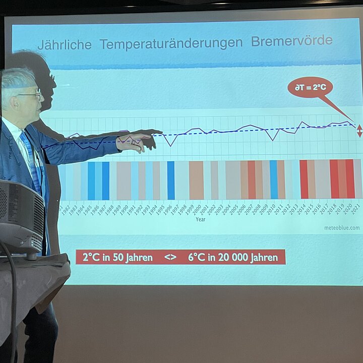 Bei unserem Clubabend im Mai 2023 im Rittergut in Oese-Poggemühlen hat uns Dr. Hannes Grobe, Geologe und Wissenschaftler am AWI in Bremerhaven in einem Vortrag über die alarmierende Zahlen und Fakten des Klimawandels informiert.