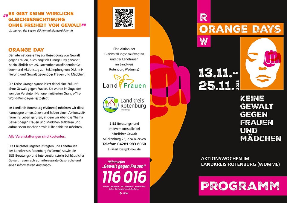 Wir bekennen Farbe zu den „Orange Days - keine Gewalt gegen Frauen“. Am frühen Abend des 25.11.23 startete die Kundgebung der Initiativgruppe zu den Orange Days vor dem Zevener Rathaus.