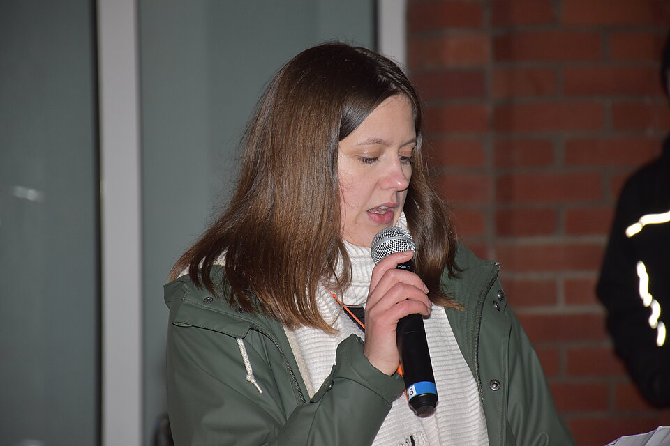 Zevens Gleichstellungsbeauftragte Nicole Renee Flynn und die Leiterin des Frauenhauses im Landkreis Rotenburg, Janina Riepshoff, forderten in ihren Ansprachen mehr Täterarbeit, also mehr Hilfe und Beratung für gewalttätige Männer.